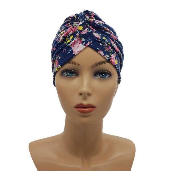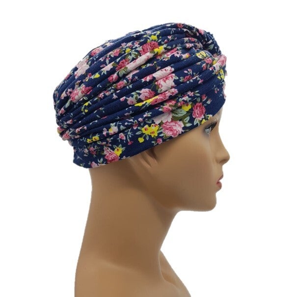 Luxe chemo muts - 502 - Blauwe bloemenprint